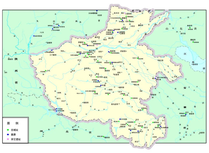 • 河南省境内主要夏商周遗址分布图