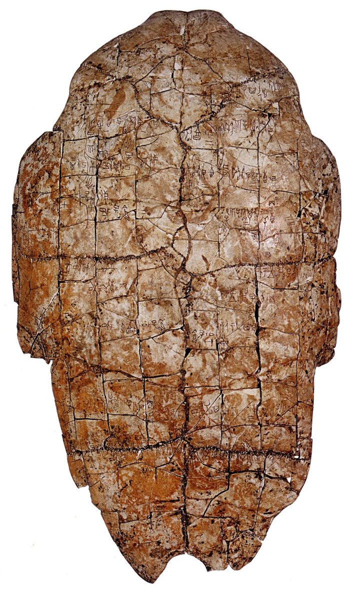 牛骨和龟甲在商代被用来作为占卜的道具,占卜的内容和结果大都刻在牛骨和龟甲上,占卜使用过的牛骨和龟甲成为记录商代文字的重要载体。甲骨文是目前所知最早的汉字,字形基本固定,具有表音功能,能够组成句子表达意思,内容详尽地记录了宗教祭祀、生老病死、方国战争、天文星相、交通地理、农业收成等贵族生活中的大小事件,承载着商人虔诚庄重的宗教情怀与逢凶化吉的美好愿望。