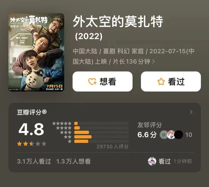 《外太空的莫扎特》在上映之前能在市场呼声如此之高,很大程度上来源于“唐探系列”和“误杀系列”影迷的期待。但这次的陈思诚对他们来说是如此陌生。