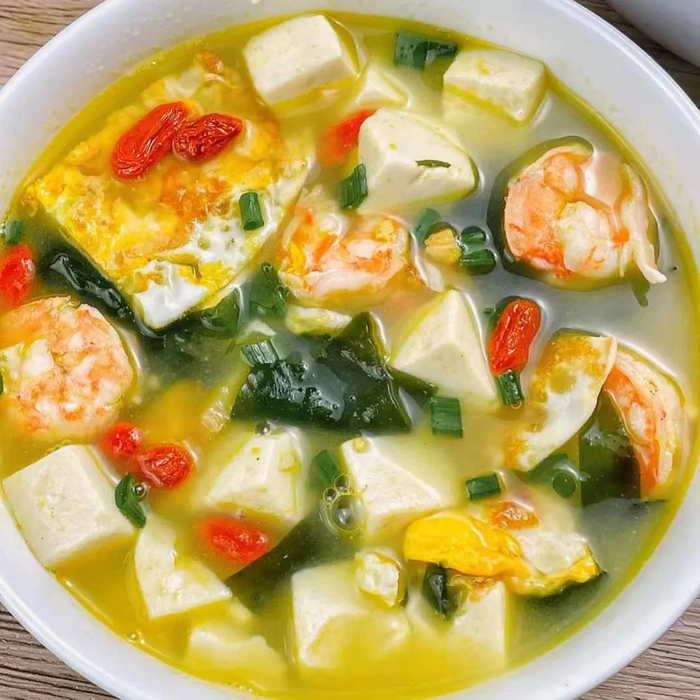 裙带菜配上滑嫩的豆腐与鲜美的虾,