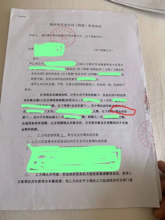 对于此事,华远地产在接受《华夏时报》记者采访时表示:“我司与业主签署了《商品房买卖合同》及补充协议,补充协议构成买卖合同不可分割的组成部分,与买卖合同具有同等法律效力,业主对其购买房屋的总价款予以认可。但网签时涿州建委是不看补充协议的,故网签价格会与实际购买价格不一致。”