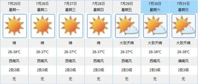 未来一周连续高温晴热天气