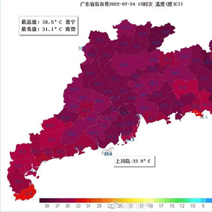 粤北的部分市县可达39℃或以上