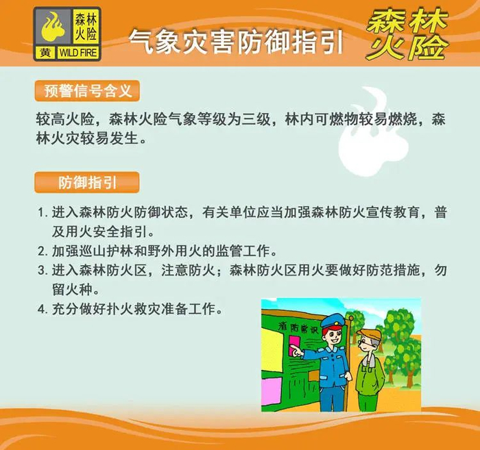 高温橙色预警!森林火险黄色预警