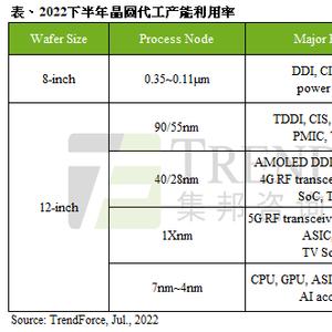 TrendForce:砍单潮来袭,下半年八英寸晶圆厂产能利用率下滑幅度明显