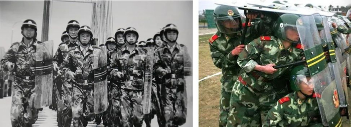 ▲ 不同时期头戴GK80式钢盔的武警战士