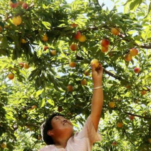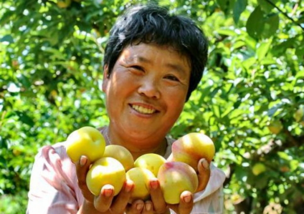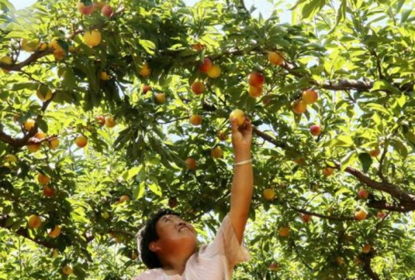 村民正忙着采摘李子。