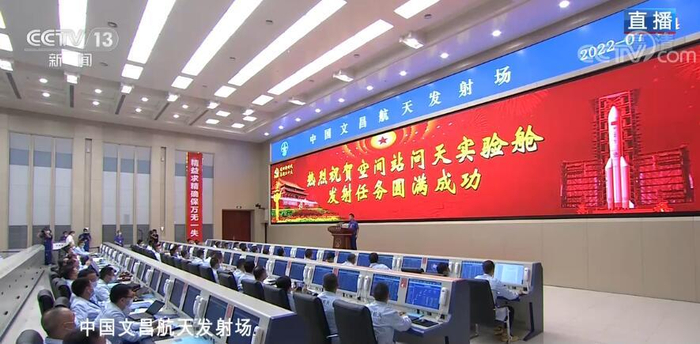 央视网消息: 据中国载人航天工程办公室消息,北京时间2022年7月24日14时22分,搭载问天实验舱的长征五号B遥三运载火箭在我国文昌航天发射场点火发射,发射取得圆满成功。