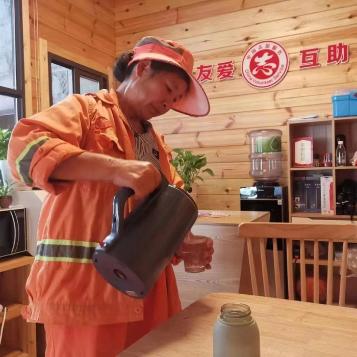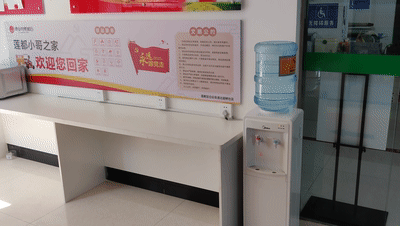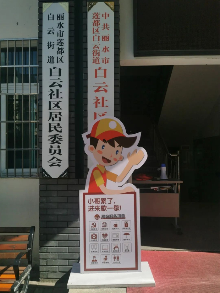 各个驿站内都有免费茶水、WIFI、微波炉等等,供社区居民与“莲都小哥”休息使用。