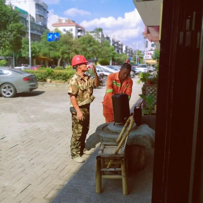 我发现在做这个事情的时候,我的店员们也很开心,他们看见劳动者会主动地去送水、西瓜,因为他们的工作确实会比我们要辛苦一些。虽然说也不值多少钱,不过他们对着我们笑的时候,内心会非常开心。这可能就是彼此之间一种心灵的滋养吧!