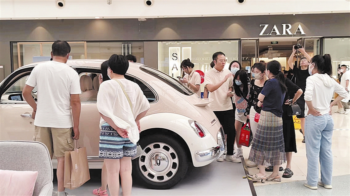 2.欧拉汽车在西安路罗斯福商场内进行展销。