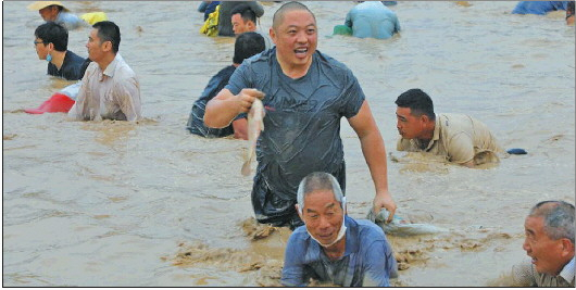 上午9时20分,随着一声“活动开始”的口令响起,“摸鱼好手”们卷起裤腿,光着脚丫跳入水塘。水塘内霎时热闹了起来,不少选手追逐着鱼儿四处游动,引得鱼儿跃出水面,现场呐喊助威声不绝于耳,场面甚是壮观。整个摸鱼比赛完全免费,并设特等奖和一二三等奖,并有一定的奖金奖励。