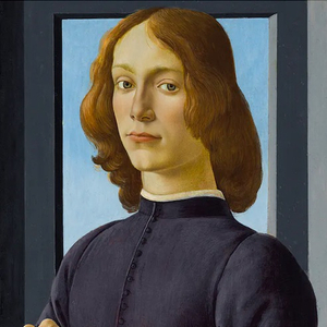 文艺复兴巨匠桑德罗·波提切利 的价格成交,创下艺术家作品的新纪录。画中模特目光清晰、衣着考究,这属于波提切利的风格。然而,这个英俊青年修长的手指却抓着一个镀金小圆镶板,上绘有另一幅肖像。