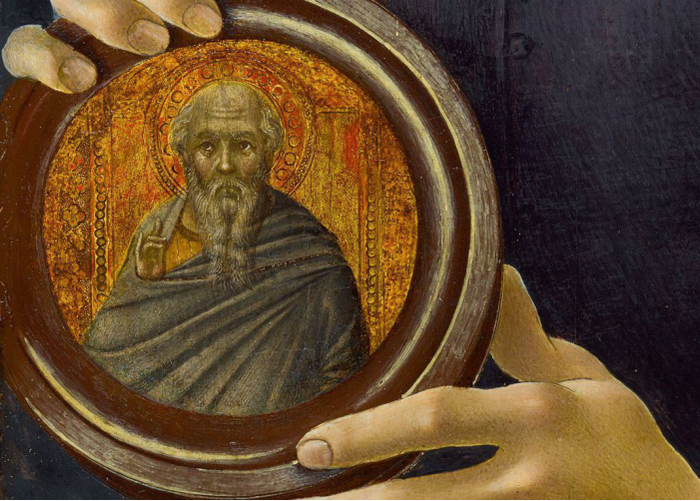 波提切利如何看待他那个时代的古物收藏家中流传的无数小块镀金面板?他会如何理解宝格丽尼笔下年迈的先知?在他的肖像中嵌入镀金面板的时间尚无定论,但正如那个拿着镀金圣像的年轻人邀请观众审视这幅作品一样,将这两幅画结合为一的人也在邀请我们想象它们之间的关系。