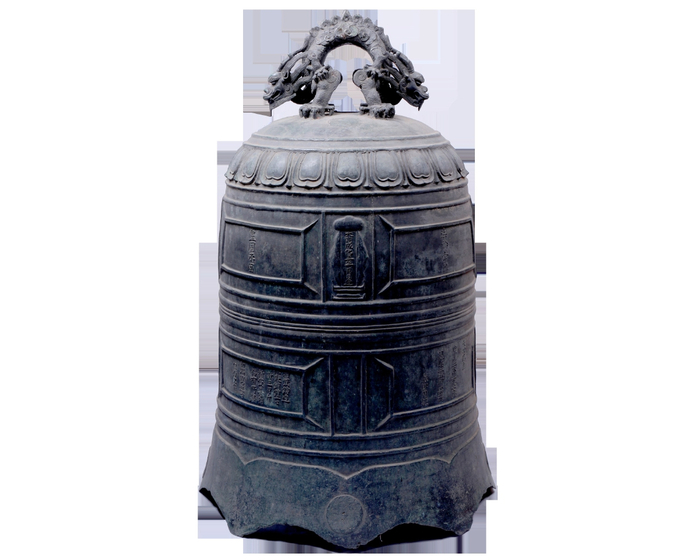 不仅如此,该铜钟钟身上也刻着“皇图永固”“帝道遐昌”“佛日增辉”等铭文,其余铭文则记录了这口铜钟的铸造时间等信息。如“大明成化五年造”“捐资铸造佛殿铜钟一口,计三百斤,祈资善利,福有所归,敕赐宝通寺住持文杰”等。不过这口铜钟并没有雕刻丰富的佛教铭文。专家表示,宝通寺铜钟造型端重古雅,纹饰简练,可使钟声回环而悠长。