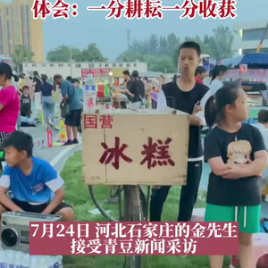 【#4个娃暑假摆摊卖冰棍# 体会:一分耕耘一分收获】7月24日,石家庄行唐县的金先生接受青豆新闻采访。最近,金先生家的4个孩子摆摊卖冰棍引关注。金先生告诉记者,几个孩子是堂兄弟、堂兄妹关系,放暑假了常常凑在一起玩。在金先生的提议下,几个孩子翻出家里一个旧箱子,开始上街卖冰棍赚零花钱。金先生说:“进货的钱是他们自己攒的零花钱,赚了钱他们也是平分的。”金先生表示,几个孩子通过卖冰棍可以体会到大人赚钱不容易,也希望他们明白一分耕耘一分收获。 @青豆视频