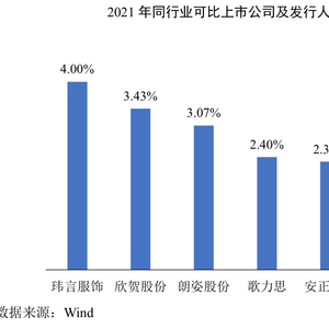新款多与玮言服饰的投入有关,2021年玮言服饰的研发费用率为4%(研发费用2526.68万元),在可比公司中排第一,平均值为2.55%。玮言服饰有104名研发设计人员。