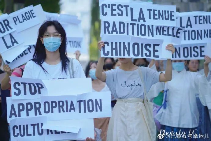 昨天(23日),50余名中国在法留学生在巴黎迪奥旗舰店附近,抗议迪奥的文化挪用行为,也为中国传统文化发声。