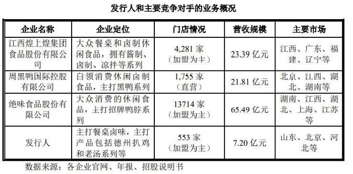 德州扒鸡和“卤味三巨头”的业务情况对比。/招股书