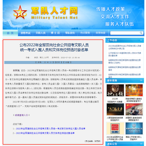 公布2022年全军面向社会公开招考文职人员统一考试入围人员和文体岗位预选对象名单