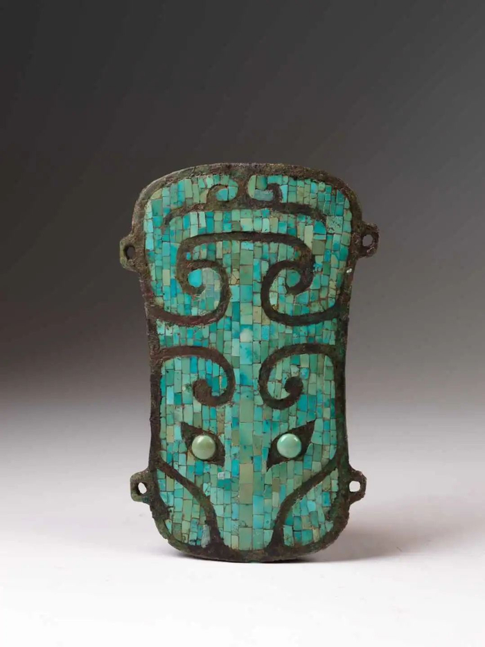 “这次我们还将展示其他镶嵌绿松石的文物,比如二里头遗址出土的非常有名的’镶嵌绿松石兽面纹牌饰’。实际上这也是夏商周时期非常成功的一个工艺,体现了当时重要的工艺特征和精湛的工艺水平。”