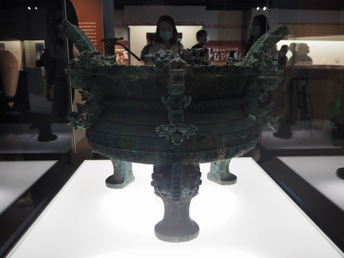 展览现场的“蟠螭纹盖鼎”