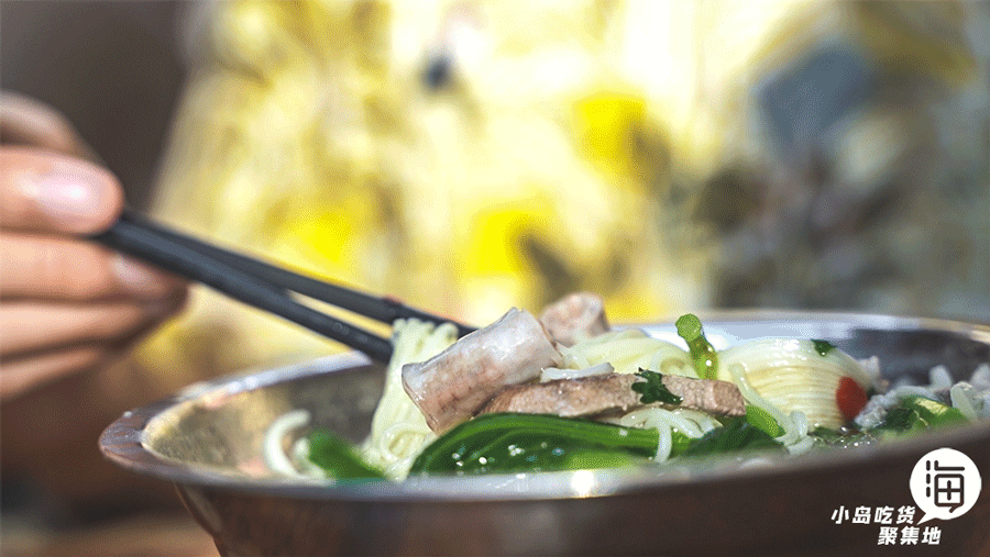 海口早餐江湖里不可或缺的焖面,软而不烂的面条吸满了汤汁,和蛋花、瘦肉一起呲溜进肚,满足感油然而生。