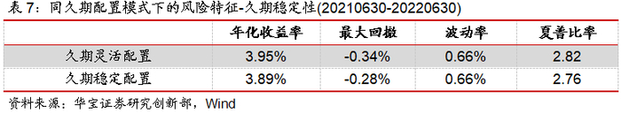 不同的久期管理模式在各行情阶段下都有差异化适应能力,基金久期的风险收益特征也是我们评估基金经理能力和判断市场行情的重要指标之一。首先从久期管理稳定性的角度,在过去一年中,久期灵活配置的中长期纯债型基金年化收益率为3.95%,优于久期稳定配置的基金年化收益率3.89%,从波动率看两者非常接近,但是灵活配置的基金遭受了更严重的回撤。