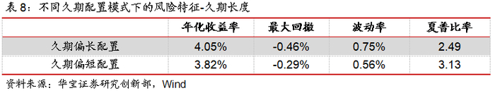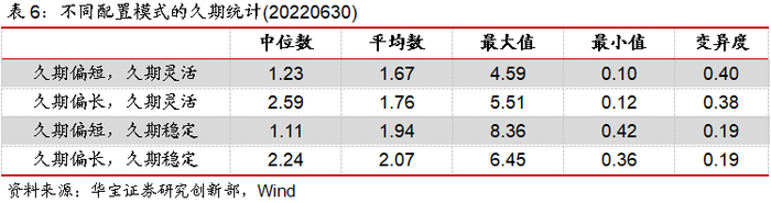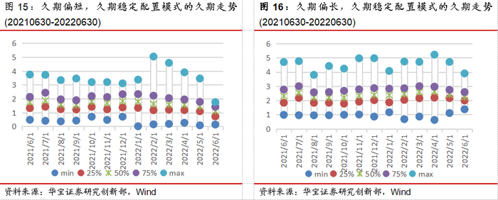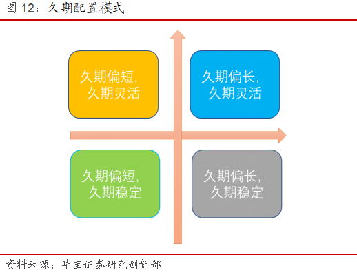 按照上述标准,我们对应得到久期偏短+久期灵活、久期偏长+久期灵活、久期偏短+久期稳定和久期偏长+久期稳定四种配置模式。