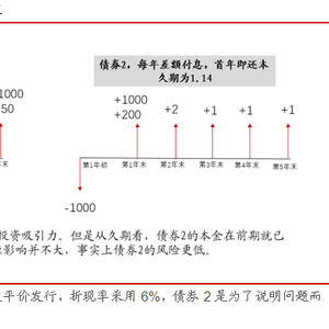 (2)票息率。在其他条件相同的情况下,债券票息率越高,通常久期就越短。