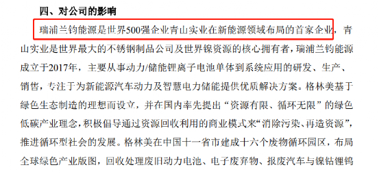 中国基金报记者则注意到,格林美正在进行海外上市的过程,对股价或有一定诉求。