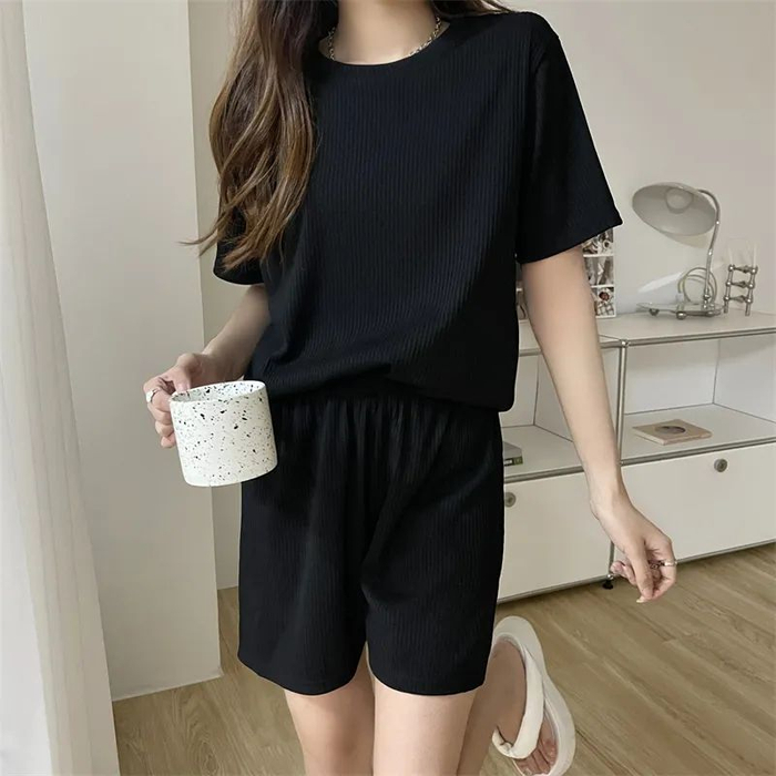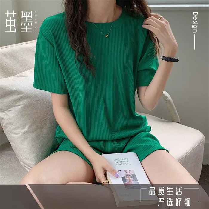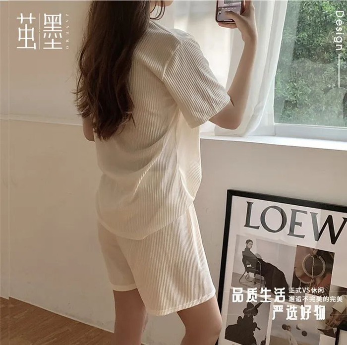 这套家居服采用复合氧气冰丝面料。