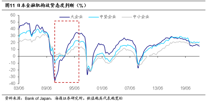 但是在这种情况下,日本政府的金融监管仍然十分宽松,不良率高企的金融机构不仅不会破产,还能正常运行、放贷。这一方面是由于日本银行业传统的“护卫船团”模式,日本行政部门会救助陷入困境的银行,以保障它们继续生存、维护金融业整体稳定;另一方面也是当时政府和金融机构盲目乐观,错误判断了形势,没能及时化解问题。这使得银行并未大规模破产出清,而是仍向企业和个人提供信贷。