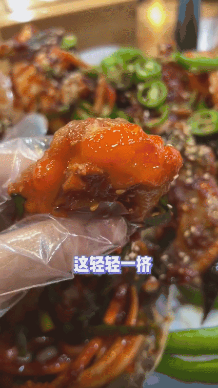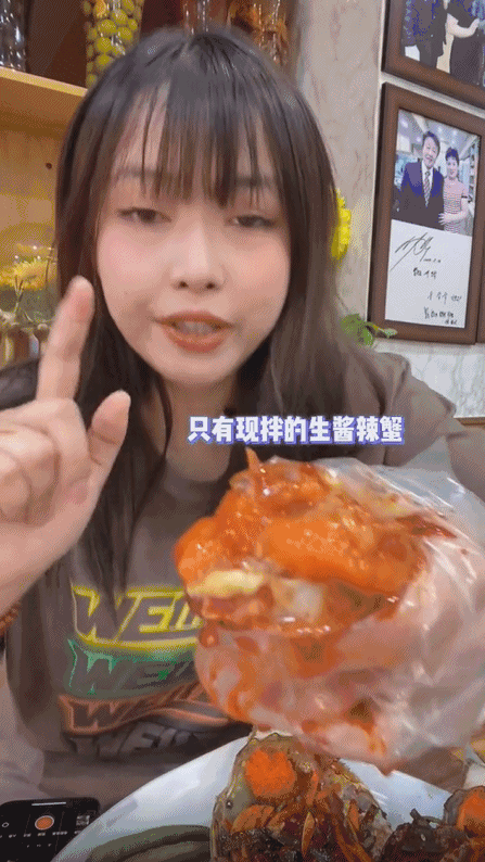 而当她对着镜头轻轻一挤蟹壳,蟹肉滋出来的一刻。