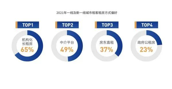 对于如何租到称心如意的房子,《2021中国城市租住生活蓝皮书》数据显示,有65%的租客选择“机构化长租房”,位列首位。