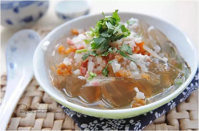 青岛凉粉是青岛十大小吃之一,是很多青岛人从小吃到大的一种小吃,不同于其他地方用绿豆粉或者淀粉做成的凉皮和凉粉,青岛凉粉是用青岛独有的特产海菜熬制之后制作而成的,吃起来比较有韧性,而且清凉爽口。