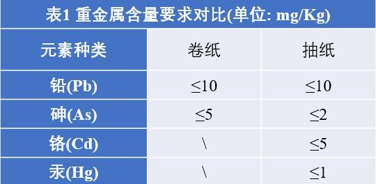 在重金属含量上,抽纸检测的元素种类比卷纸多,标准也更严格,如下表所示: