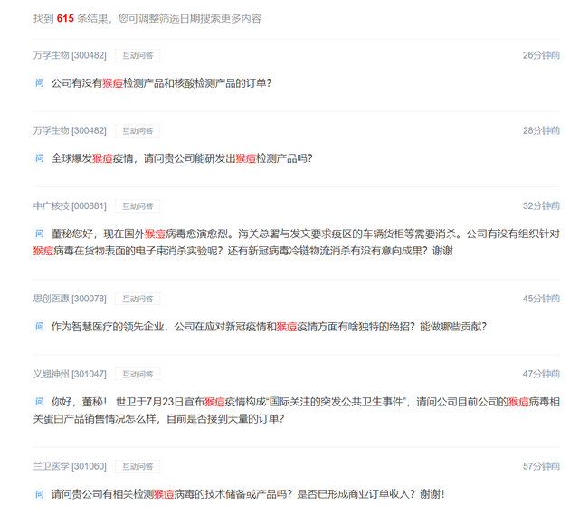 深交所互动平台关于猴痘的提问