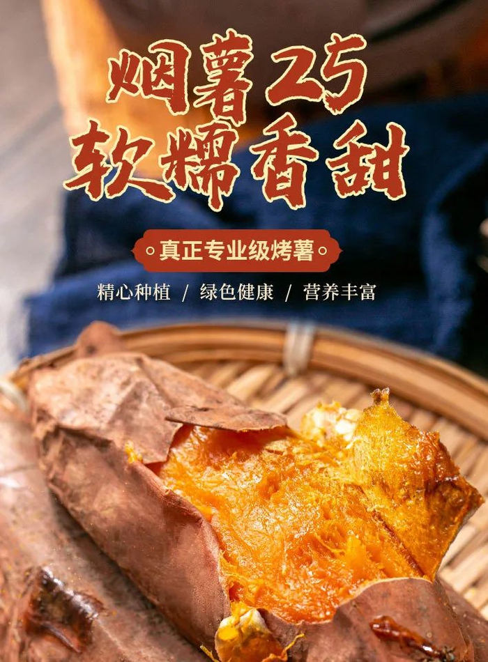 出产的原种烟薯25号,外形好,甜度高,细腻无丝,一烤就流蜜。