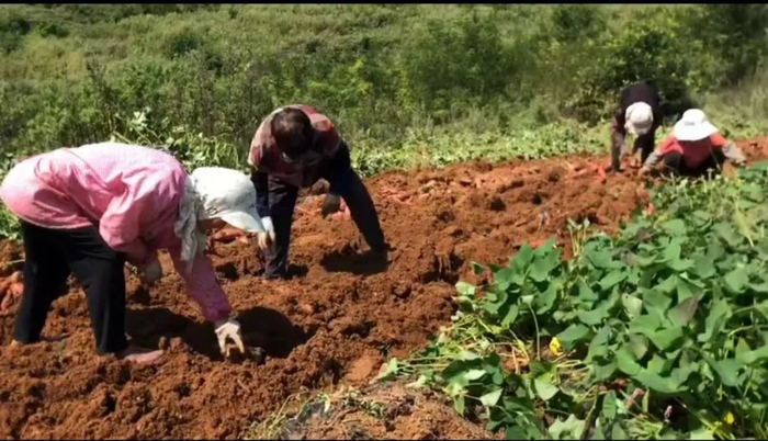 为了防止烟薯被破坏,基地的农户都是手挖的,非常辛苦。