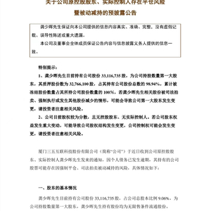 三五互联还表示,本次减持属于被动减持计划,但减持计划实施与否与质权人/债权人执行情况等因素相关,存在不确定性,具体减持价格、数量、方式由质权人/债权人视二级市场行情等实际情况而定。
