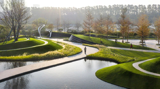 对公园营造有追求。越秀·大学城·和樾府项目就是结合地理特点及自然资源优势,打造出符合项目气质的公园,让项目坐落于25万方中央公园里,北接约65万方的滨江公园,打造世界一流滨水活力区和高质量发展典范。