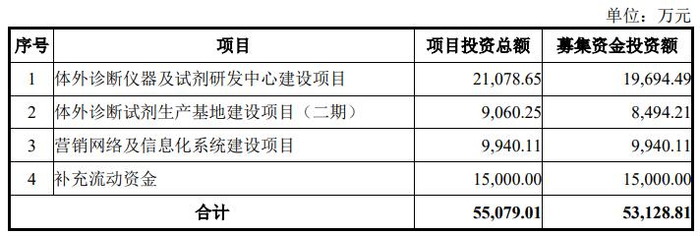 公司本次拟公开发行1431.59万股新股,募集资金将用于体外诊断仪器及试剂研发中心建设项目、营销网络及信息化系统建设项目、体外诊断试剂生产基地建设项目(二期)和补充流动资金。