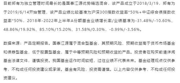 基少重仓的“雄霸赛道偏股”组合,配置了一只均衡类基金——国泰江源优势精选混合C(011325)。该基金由知名的中生代公募基金经理郑有为掌舵。