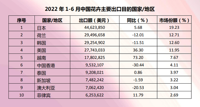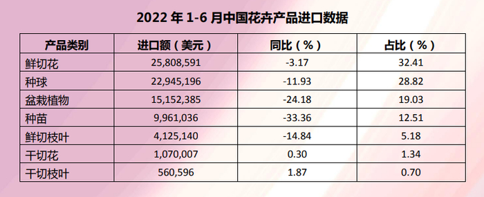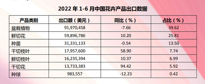 2022上半年这三类花卉出口额最大,第一名接近1亿美元