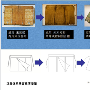 她介绍,满清时期,在汉服体系崩溃之后,马面裙剪裁逐渐偏离和丧失汉服原有的形制结构特征。民国时期,单一款式无法抵抗西式服饰文化的强势入侵,逐步改为套穿式,该款式边缘化,以个别元素形式遗存残留。