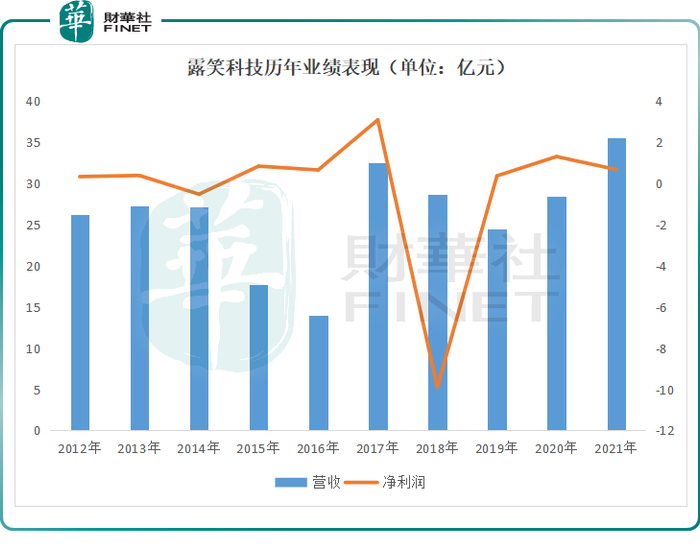 频繁地跨界,使得露笑科技造血能力较差。财报显示,2018年巨亏9.907亿元,2019年至2021年,露笑科技归母净利分别为0.36亿元、1.298亿元及0.667亿元。