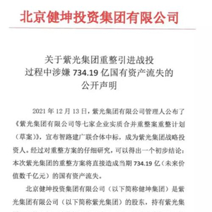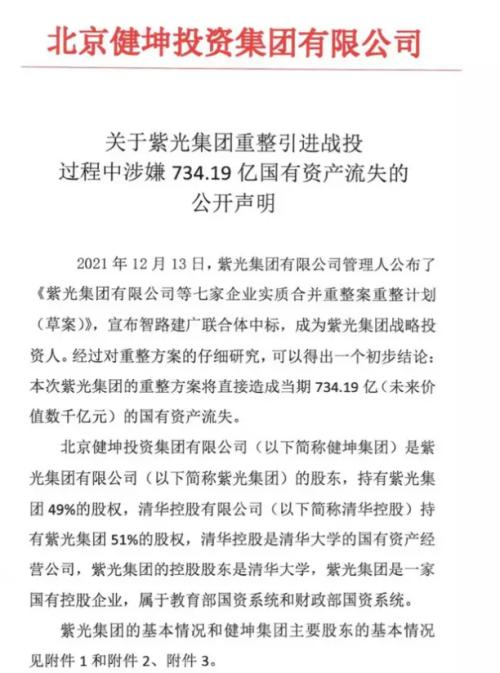 2021年12月,在破产重组即将尘埃落定时,当时还是集团董事长的赵伟国突然发声强烈反对,称重整工作组严重低估紫光集团旗下资产,并将导致超过700亿的国有资产流失,而其中大部分将落入智路资产实控人李滨等人的私人腰包。