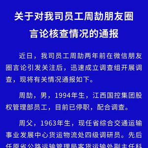 江西国控通报员工周劼朋友圈言论核查情况