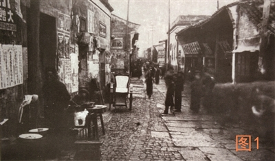 2010年,叶向阳老师在“N维宁波”群,贴出她外公王之祥先生在上世纪三十年代所拍大量宁波旧影,这让醉心于宁波旧影研究的群友,兴奋了好长时间。众多旧影中,笔者发现其中一张(图2)与(图1)十分相似,提出了是否为“南大路”的疑问。讨论良久,群友确定两张为同一地点,但确定不了是何条道路。